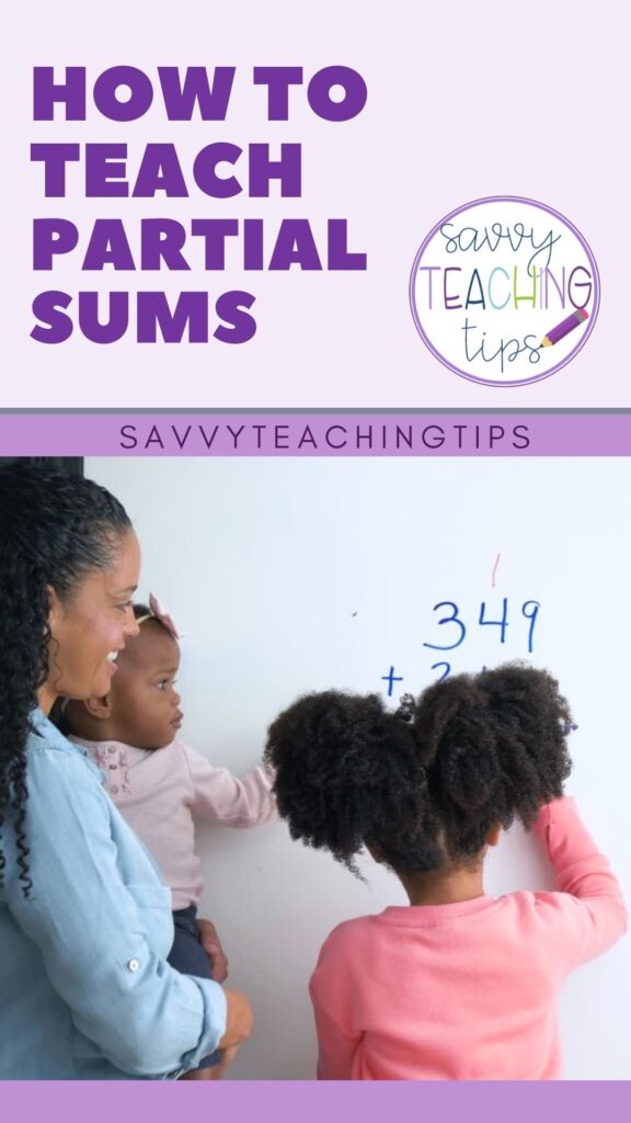 Instead of choosing which one is best, I like to teach new math and regrouping together. Why? Some students get math when they learn the regrouping method, and it’s something that parents often teach them at home. However, some kids just don’t get regrouping, so doing other methods, like partial sums, might meet their learning needs.. Therefore, I like to hit them with several different techniques to figure out what way works best for that student. This “noodle theory” (throwing things against the wall and seeing what sticks) is what got me to use partial sums.