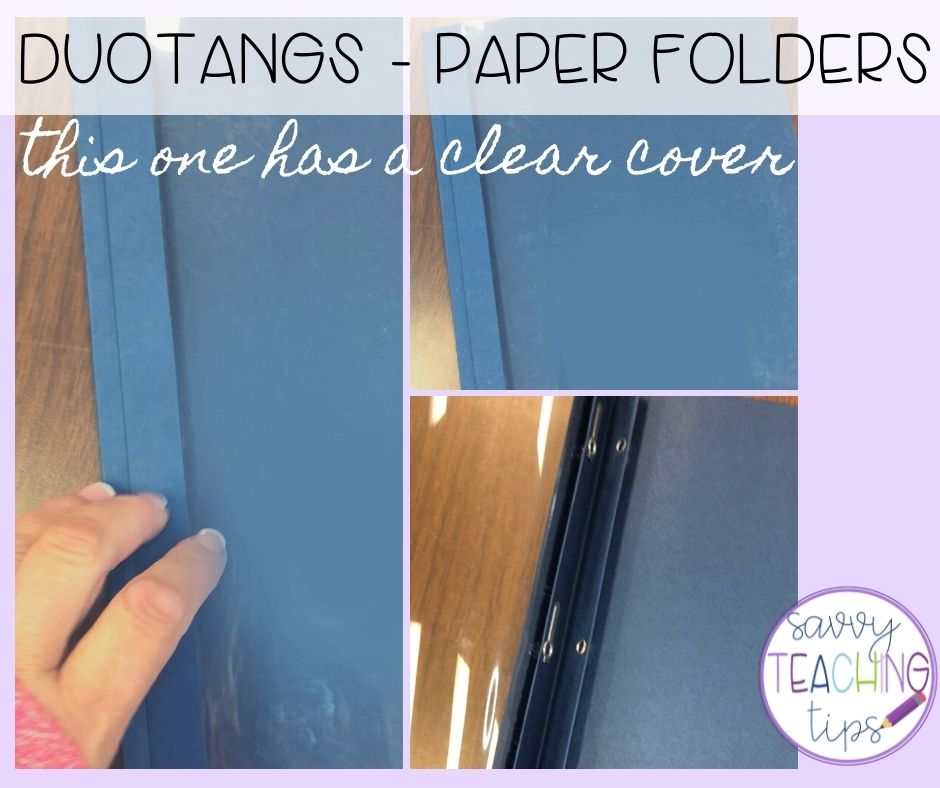 The second way you can make a class book is by using a Duotang (or 3 prong folder). But then you need a label to identify the cover. Or, you can use these clear covered folders that I found, and have reused multiple times.